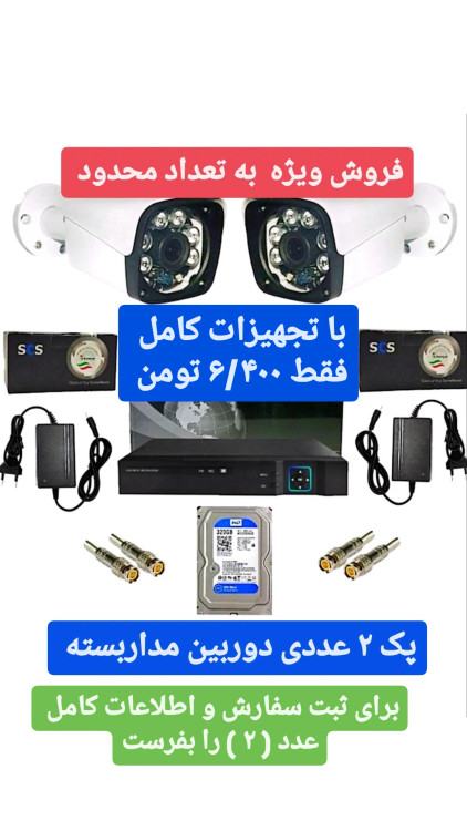 پک ۲ عدد دوربین مدار بسته با تمام تجهیزات آماده به نصب